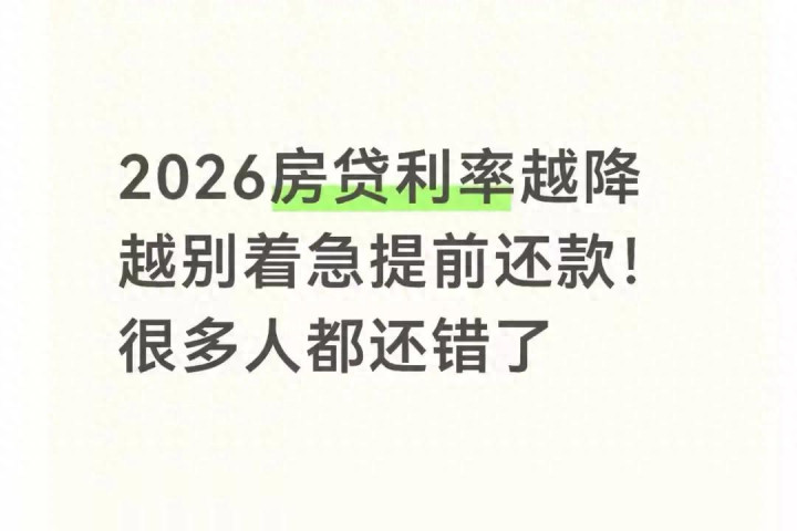 手里一有闲钱,是不是就总想着赶紧把房贷还了?身边不少朋友都在念叨:利率都这么低了,早点还完,心里踏实,还能少给银行交点利息。尤其是2026年房贷一路走低,不少人更是坐不住,攒点钱就想往银行一冲,提前结清。